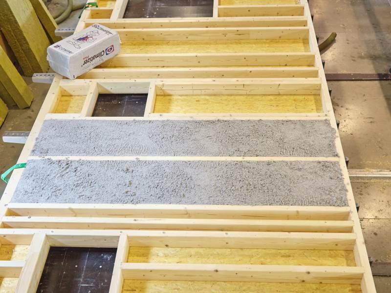 - Plnit prefabrikované konstrukce přímo při jejich výrobě v továrně (objemová hmotnost materiálu 65 až 70 kg / m3), nutné dodržení vysoké technologické kázně