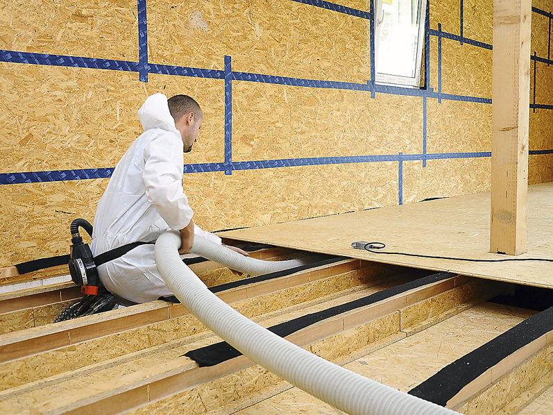 Mezi přednosti foukané celulózové izolace při výrobě panelů dřevostaveb patří bezodpadovost a dokonalé vykrytí prostoru.