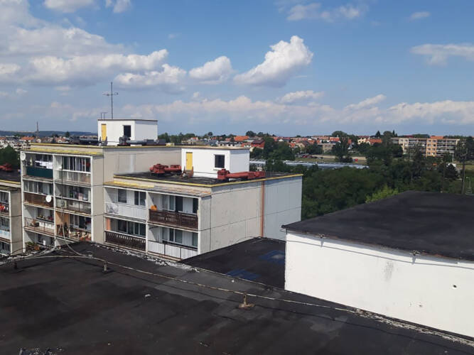 Zateplení panelového domu v ulici Nepomucká – zateplení dvouplášťové střechy